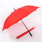 27″ x 8 panels, auto o p e n, black metal shaft x fibre glass ribs & frame, non-UV coated, solid color with Black metallic button and Black curve handle extra long umbrella
