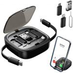 Multi USB Charging Adapter Cable Kit with a 60W fast-charging retractable cable allows you to charge multiple devices simultaneously with quick power delivery. Its compact, tangle-free design is perfect for travel, offering convenience and efficiency with various connectors (USB-C, Micro-USB, Lightning) for wide compatibility.