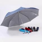 21″ x 8 panels, aluminium shaft, UV protection layer coated on interior panels, imitation nylon, lightweight, 3 fold umbrella with windproof mechanism