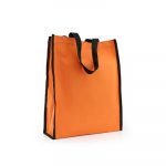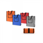 Made of Nylon fabric, durable and reusable. Reducing the use of plastic bags to protect the environment. Press stud foldable closure.